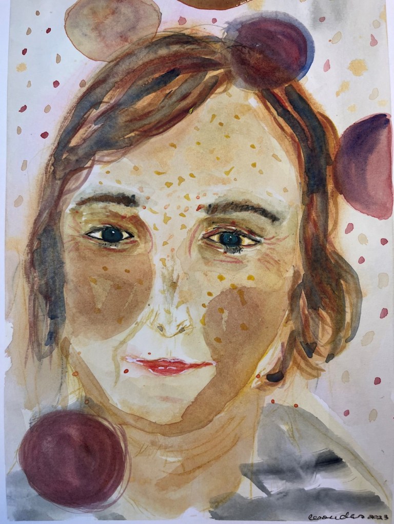 She works almost daily in charcoal in her sketchbooks, and continues to explore stylized portraits.