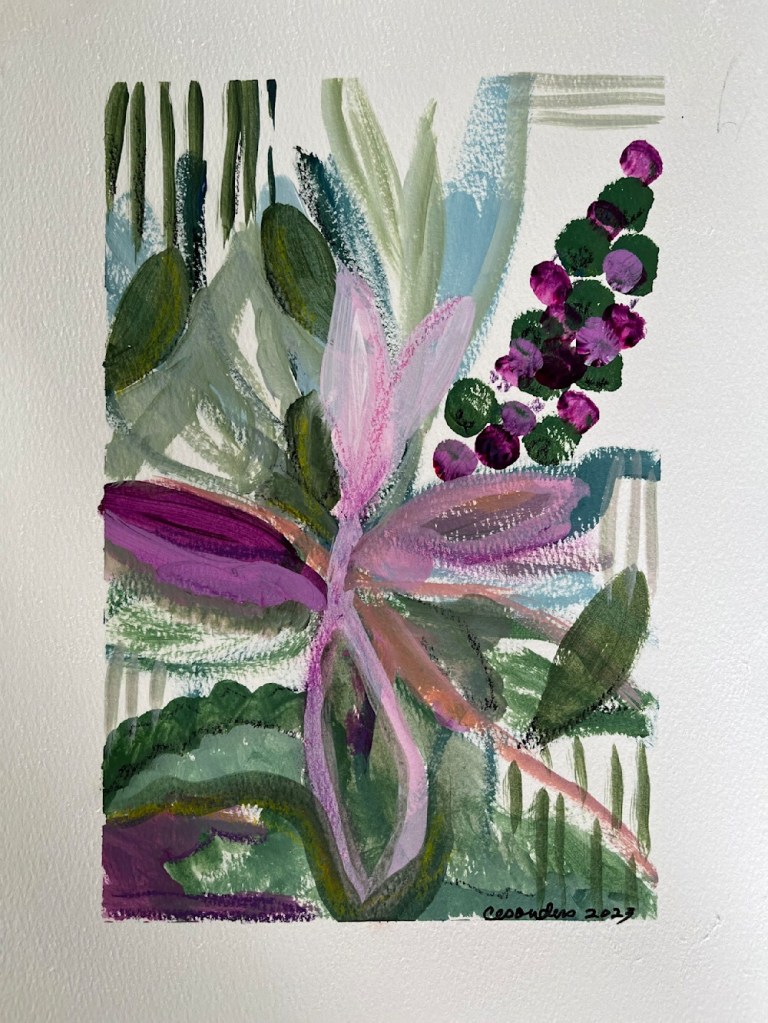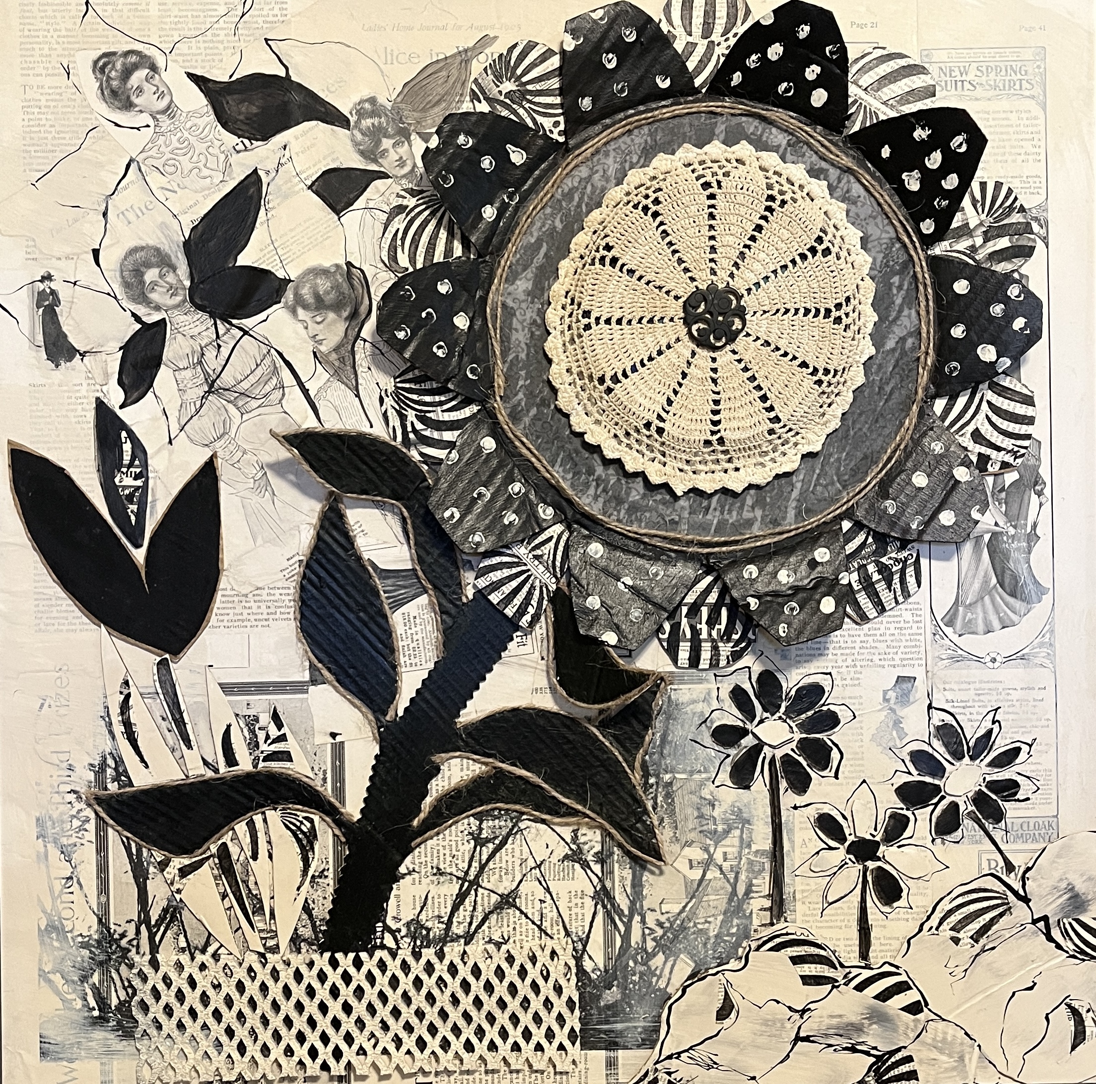Cindy strives to bring nature into any piece she creates. Currently, she is working in dimensional collage, where she has added real life from her garden into her art.
